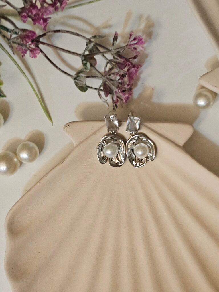 Be the first to review “Power pearl silver Hoop Earrings”